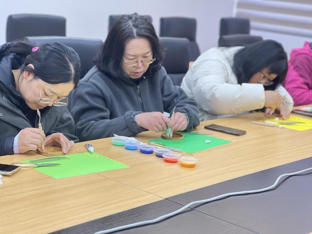 本次活动特邀春城职工减压赋能中心郭老师担任指导。在讲解环节,郭老师不仅介绍了掐丝珐琅的悠久历史,还特别分享了其独特的美学理念。她强调:“掐丝珐琅的魅力在于千人千面,每一件作品都因创作者的个性而独特。渐变色彩的运用和创作过程中的不可预测性,正是这门艺术的精髓所在。”
