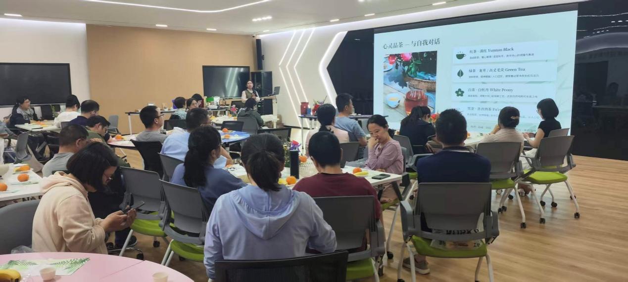 活动现场,茶艺老师结合中华传统文化与教职工生活实际,系统讲解中国茶文化渊源、常见茶类特性与基础冲泡技巧,重点拆解三大主题内涵。在茶与心灵对话环节,通过品茗引导教职工凝神静心,摒弃浮躁、舒缓情绪,在慢品茶汤中实现心灵休憩;茶与生活共振环节,分享茶事融入日常的小妙招,传递精致从容的生活态度,助力教职工在忙碌中感知生活美好;茶与健康同步环节,针对教职工长期伏案、接触电子设备的工作特点,科普茶饮养生功效、适配茶类与科学饮茶方法,把健康理念融入日常点滴。